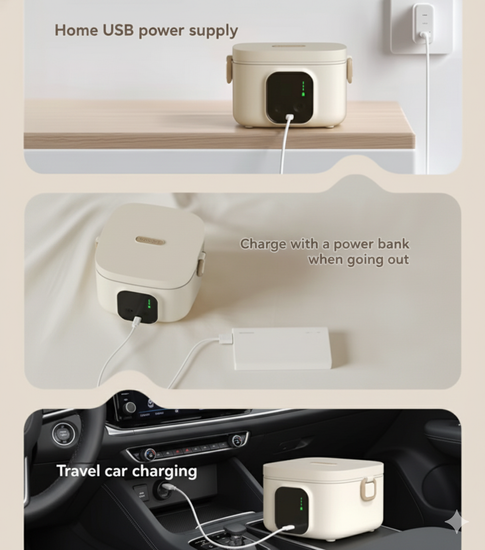 Equipped with a long-lasting, rechargeable battery, this compact cooker keeps up with your adventures. One charge powers multiple uses, making it your go-to for road trips, office lunches, or outdoor escapes.